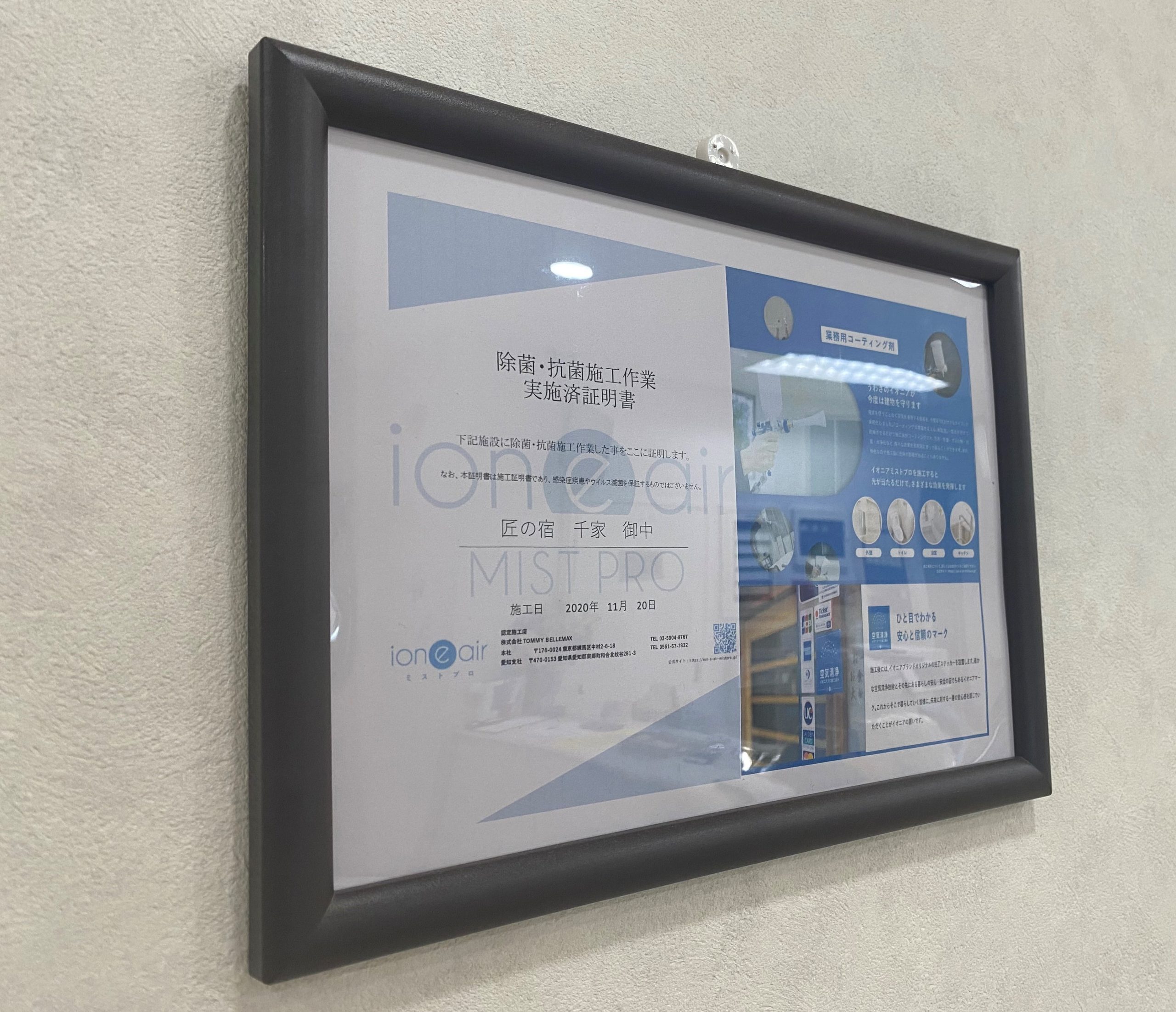 千家館内の全体に光触媒の噴射除菌を行いました。