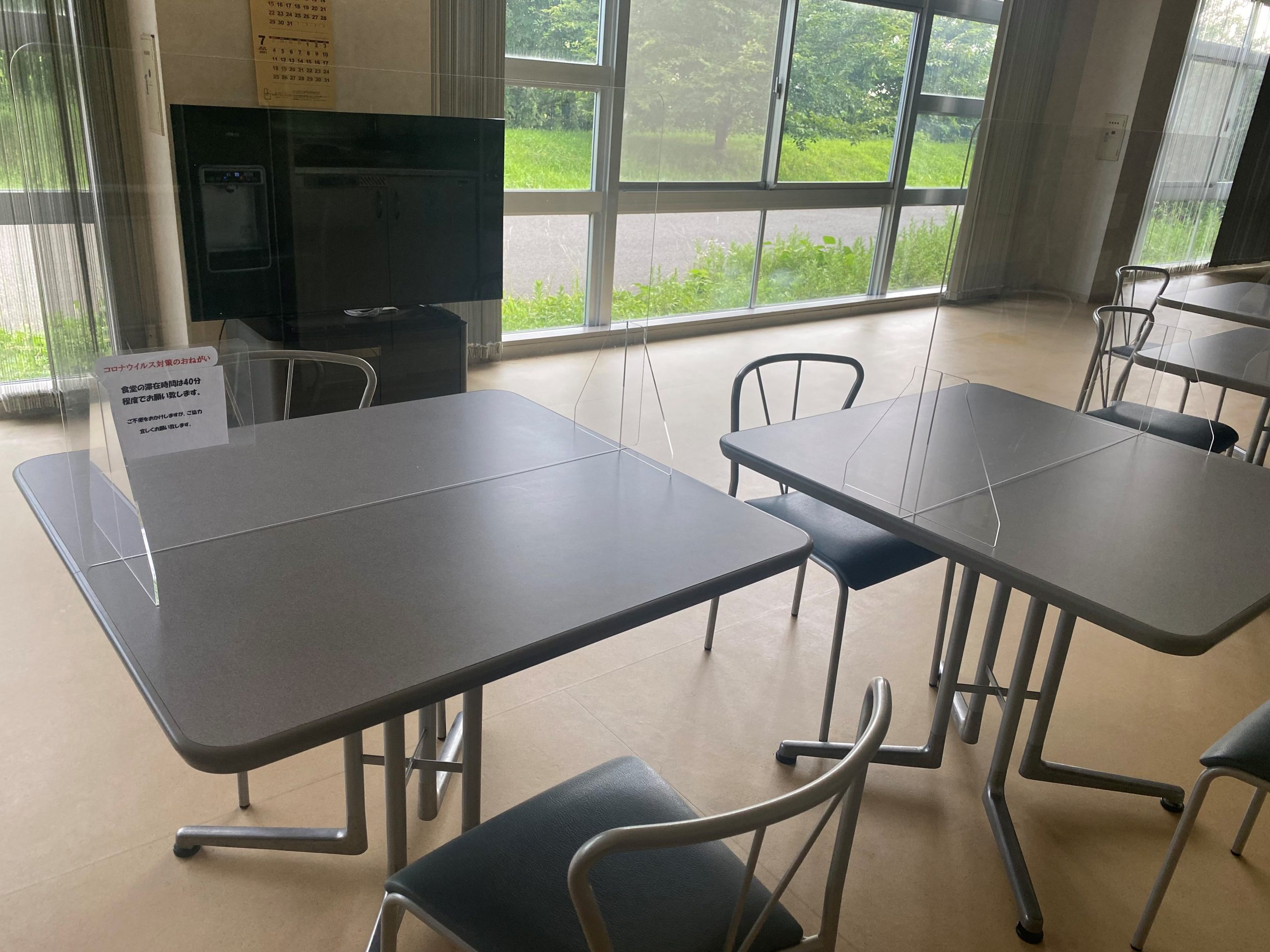 テーブルひとつひとつにパーテーションを設置。
