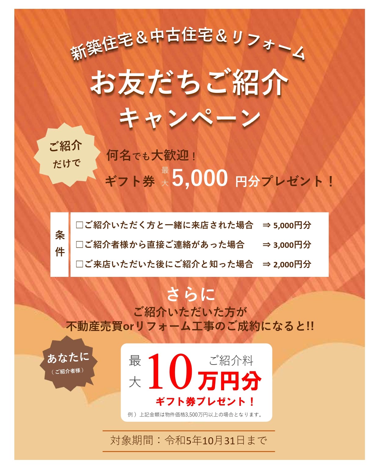 どちらも令和5年10月31日までの特別なキャンペーンになります。