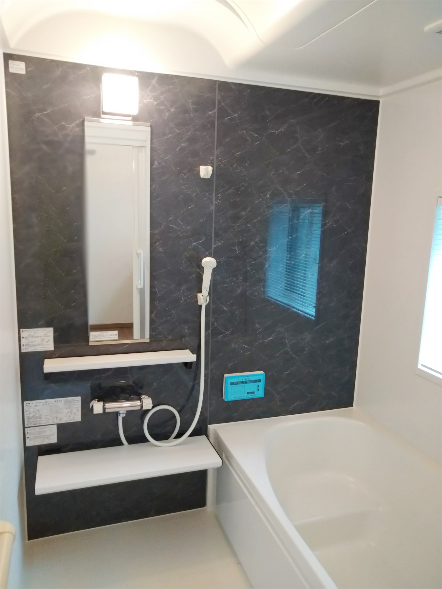 浴槽は腰掛部分があるので半身浴もしやすく、節水にもなっています。