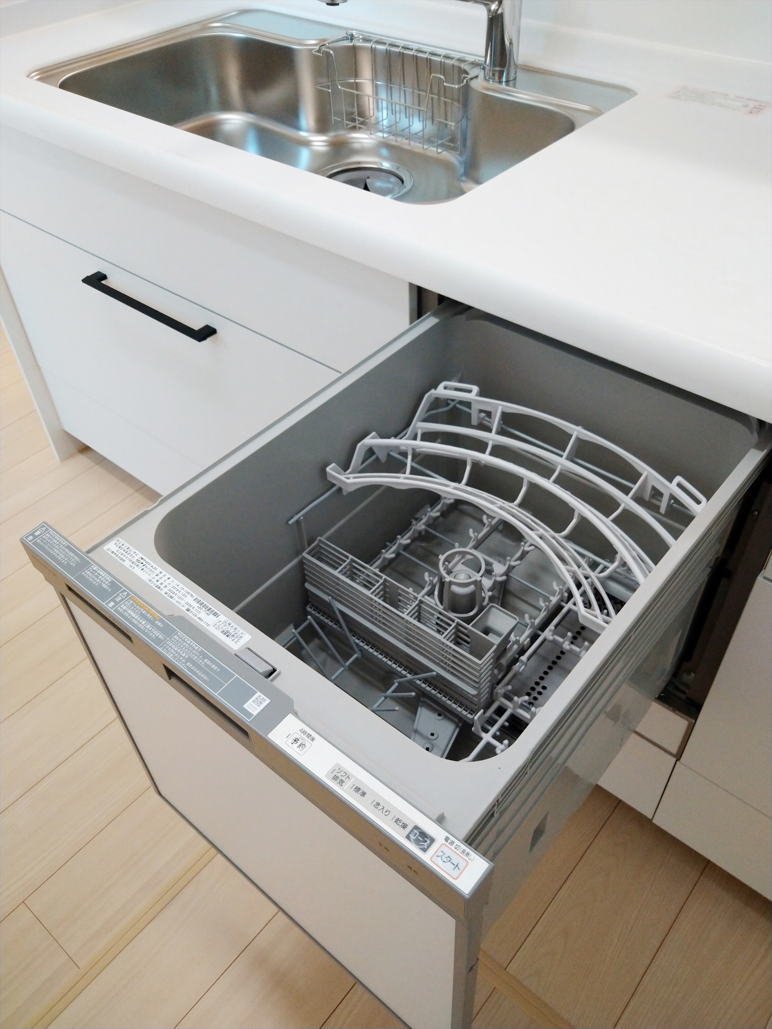 ビルドインの食洗器がついているので洗剤で手が荒れがちな食器洗いの負担が軽減されます!
